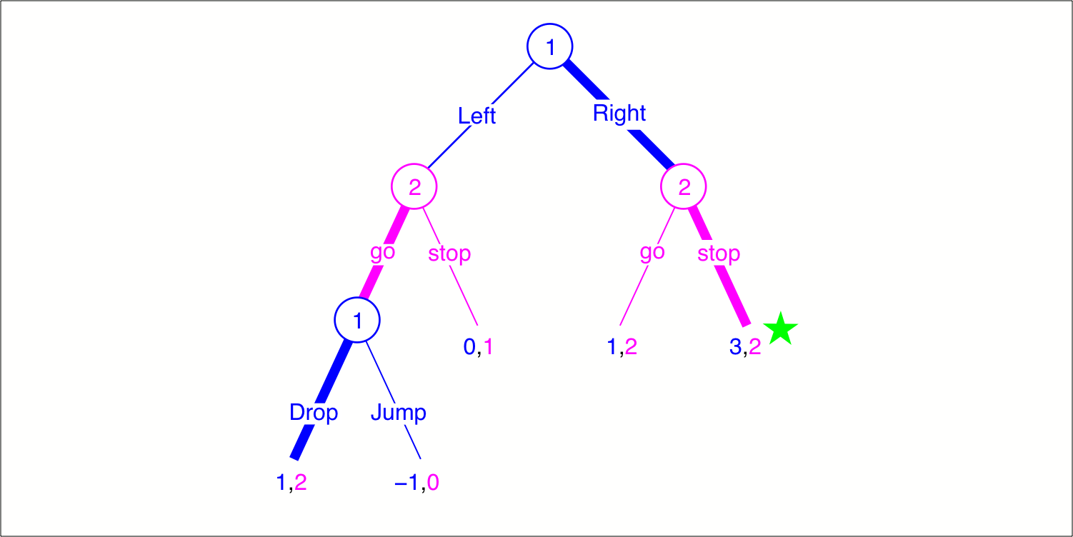 We define a strategy for a player in an extensive-form game as a specification for each of her information sets of the (pure or mixed) action she would take at that information set. One such strategy for each player constitutes a strategy profile for the extensive-form game.