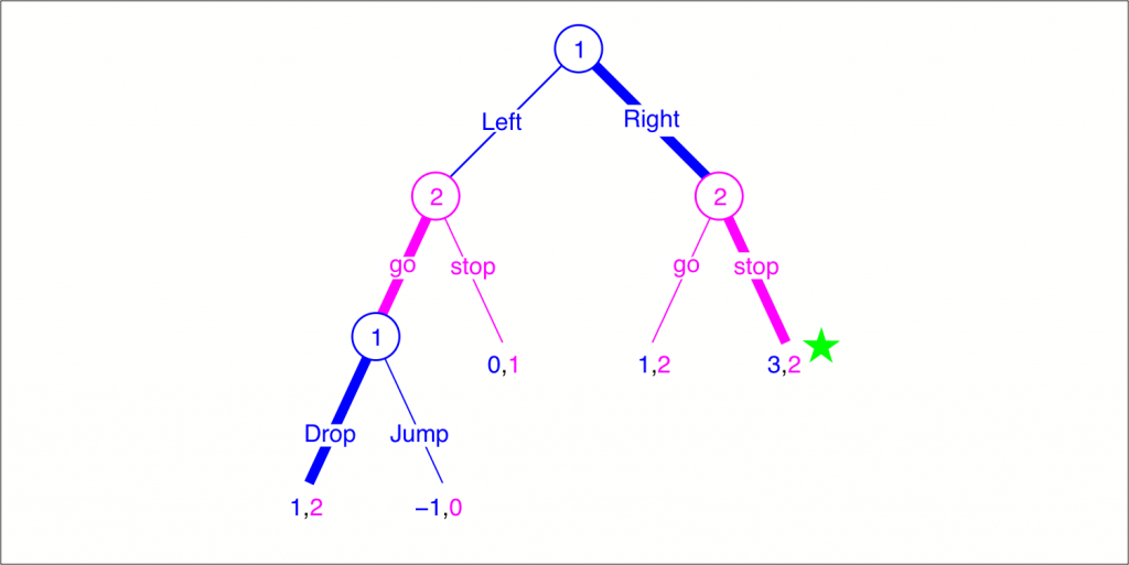 We define a strategy for a player in an extensive-form game as a specification for each of her information sets of the (pure or mixed) action she would take at that information set. One such strategy for each player constitutes a strategy profile for the extensive-form game.
